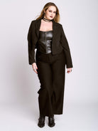 Classic cropped trouser crafted from premium double knit ponte. Featuring our custom sigil moth embroidered onto the front pockets. Zipper and button front closure with belt loops.