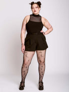 Mock neck tank with mesh yoke. Great on its own or as a layering piece!