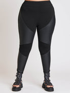 We've taken our signature leggings to a new darkness.  Premium cotton spandex with vegan leather insets on the front.