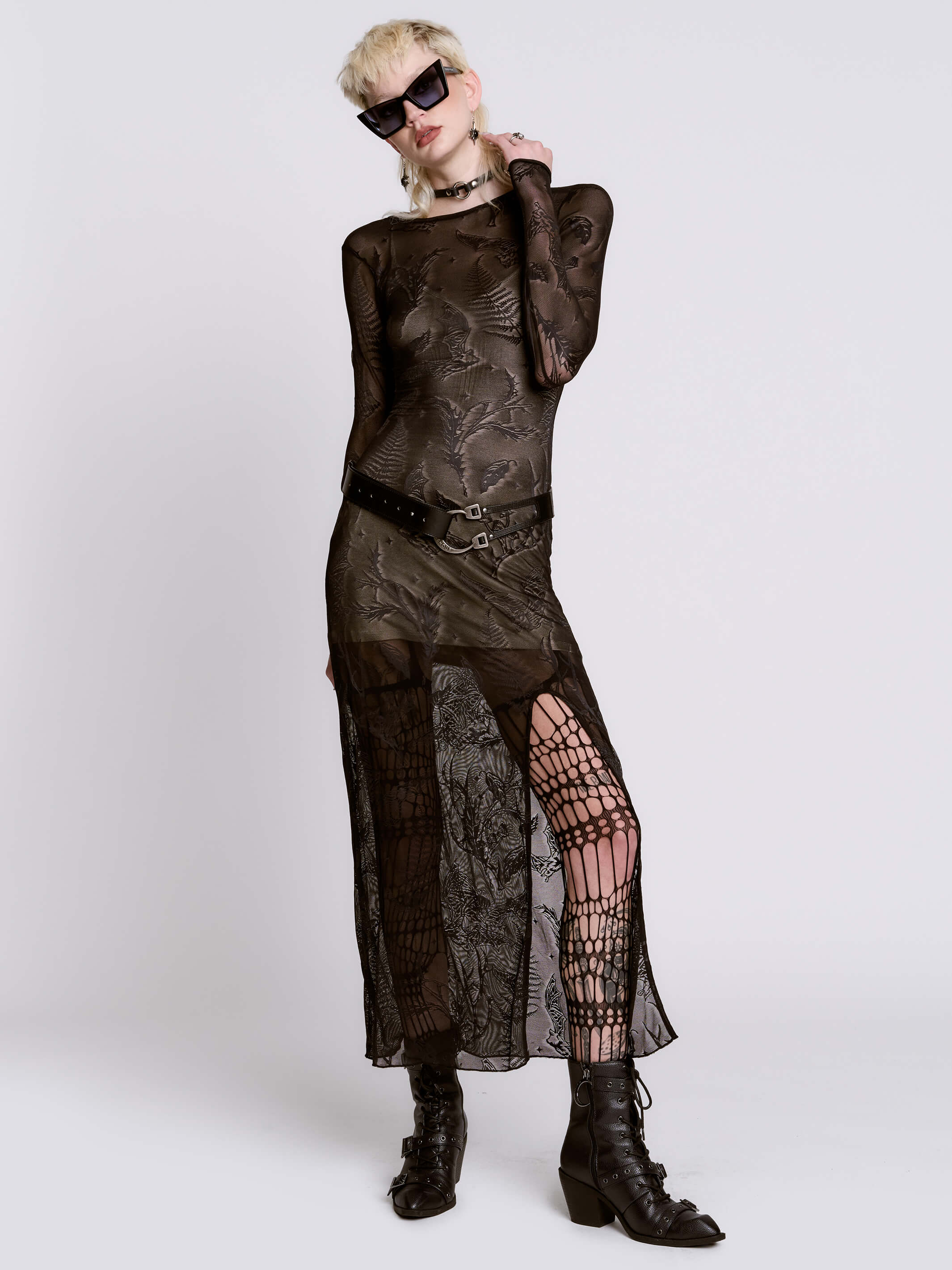 Styled with our Bat Mesh Maxi Dress (sold separately)