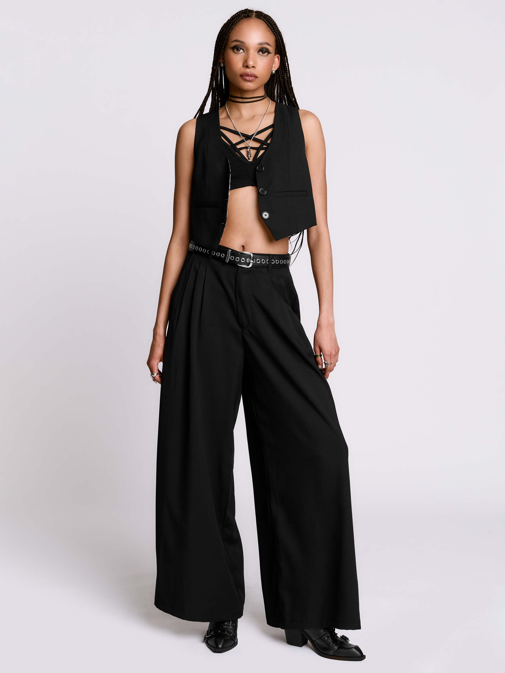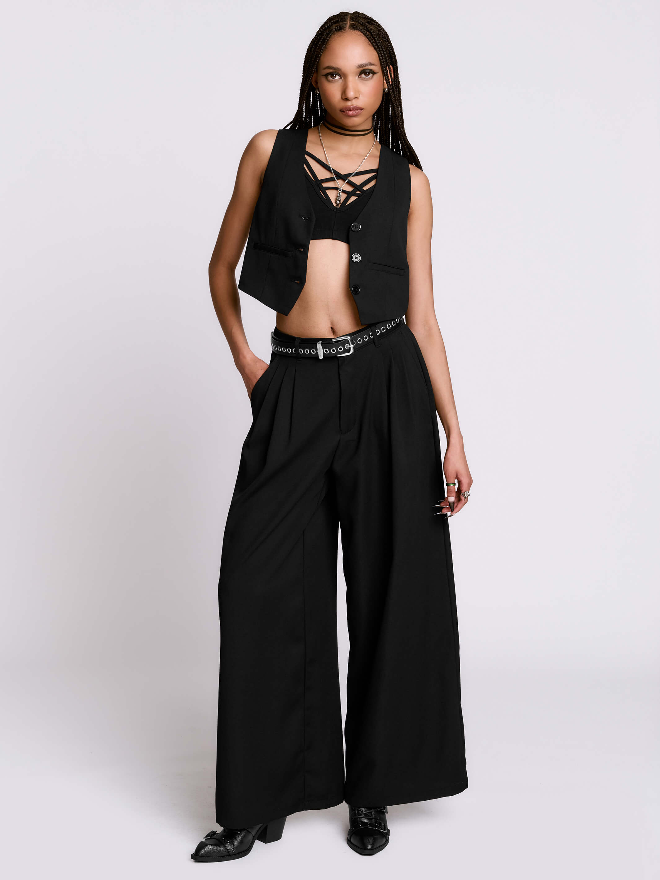 Styled with Coven Leader Bralette, Spellbound Boots and Wide Leg Corporate Trouser