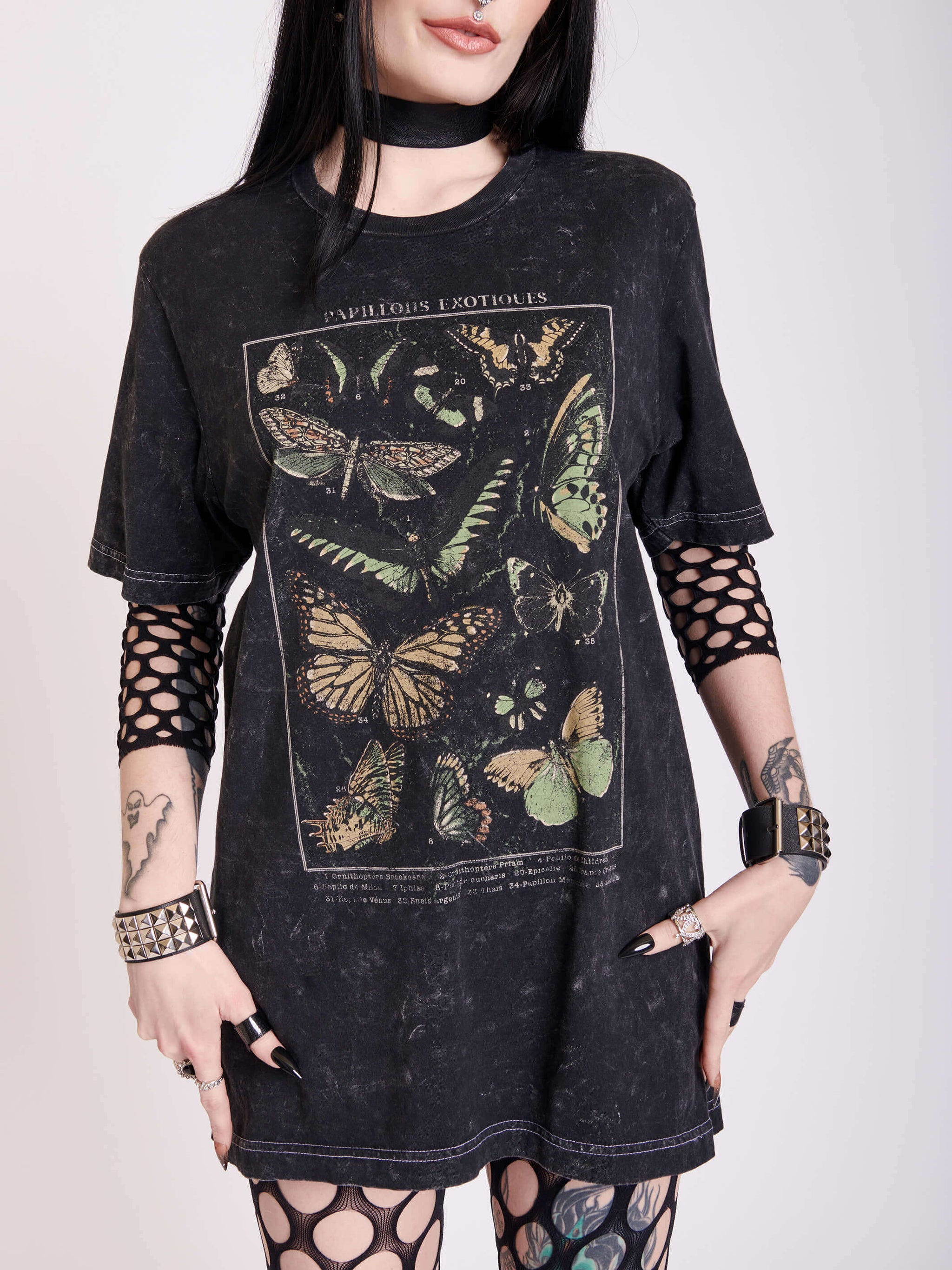 This unisex t-shirt features our custom butterfly artwork and mineral wash treatment. Men's & women' sizing is the same.