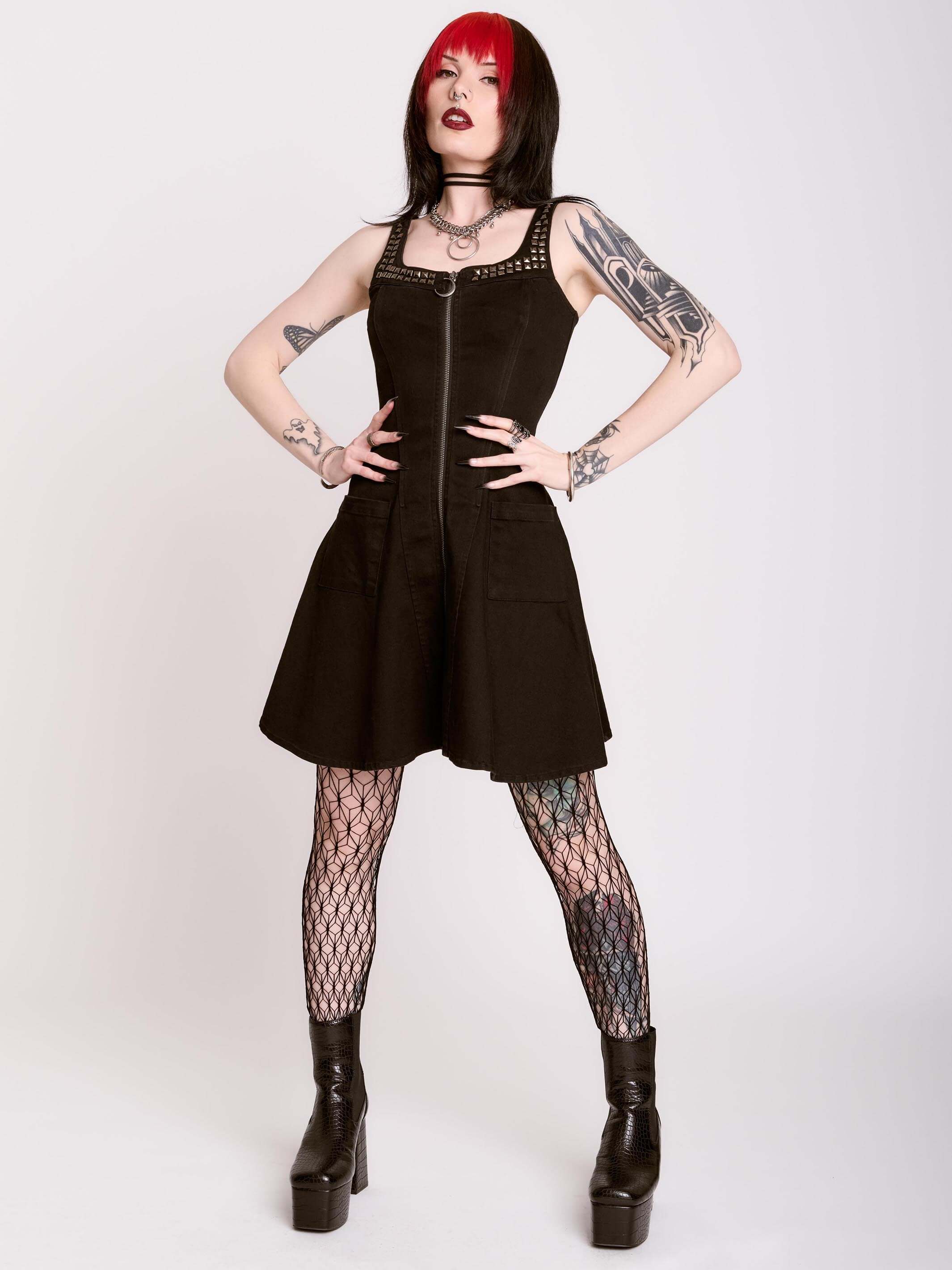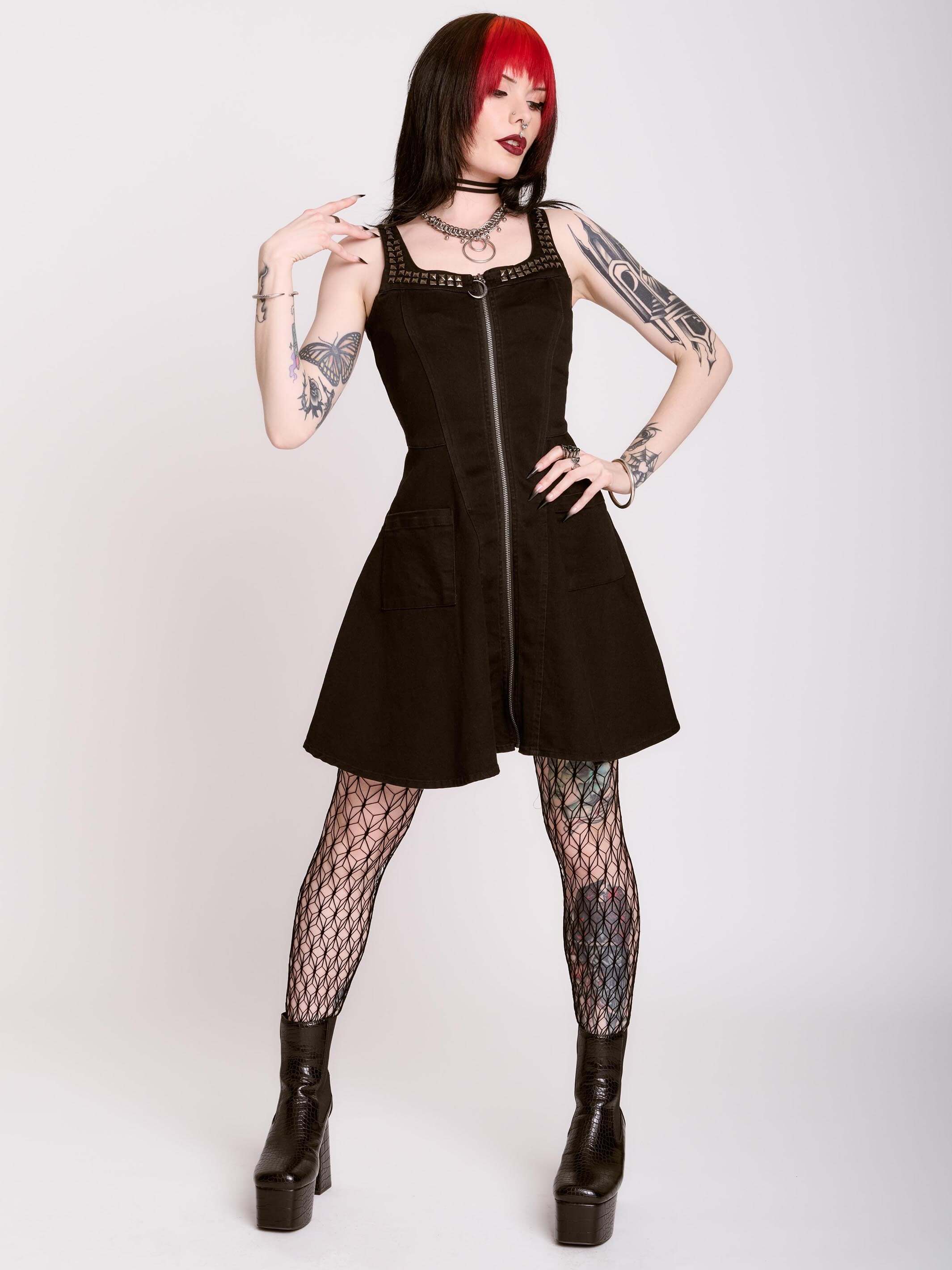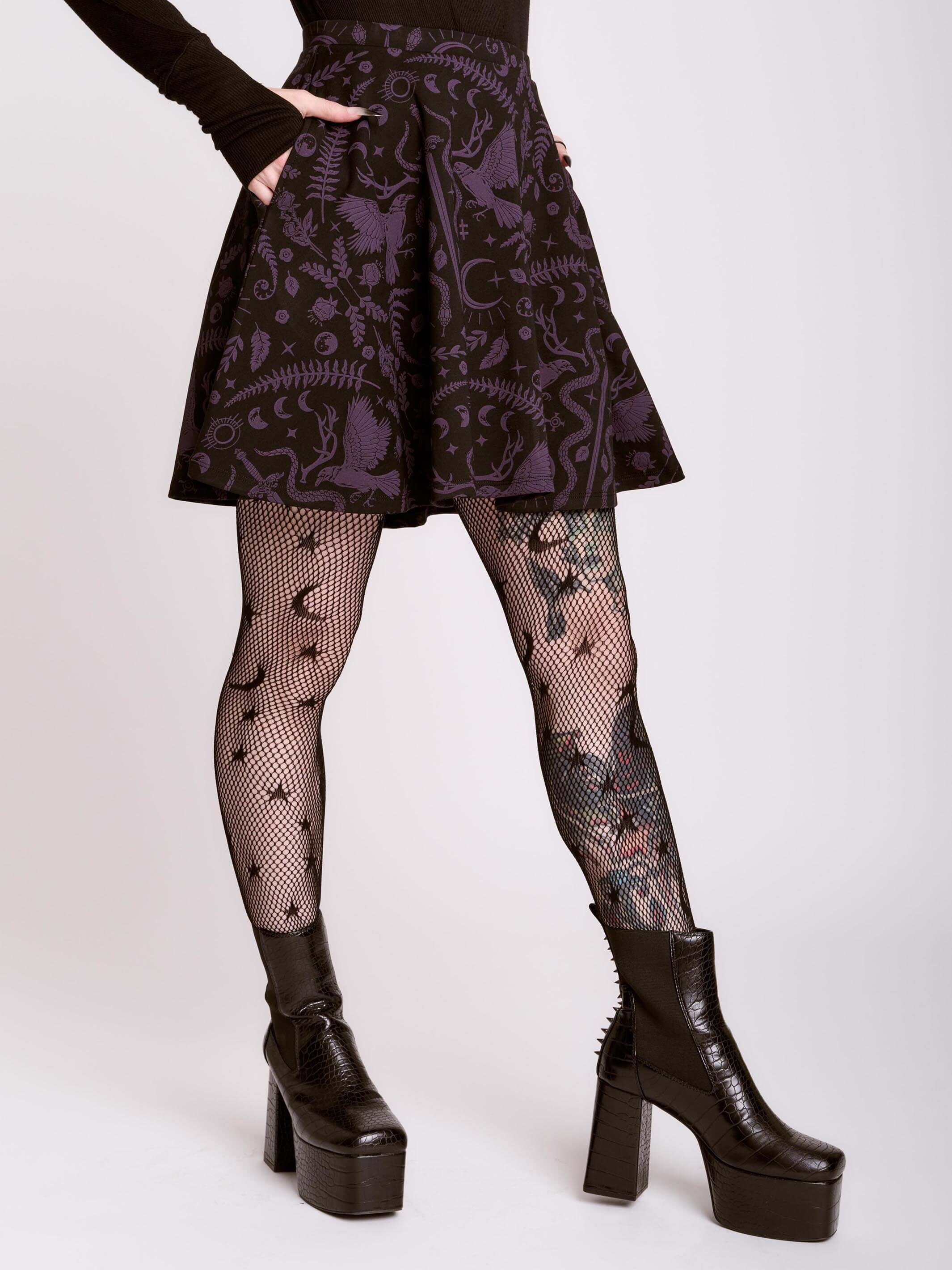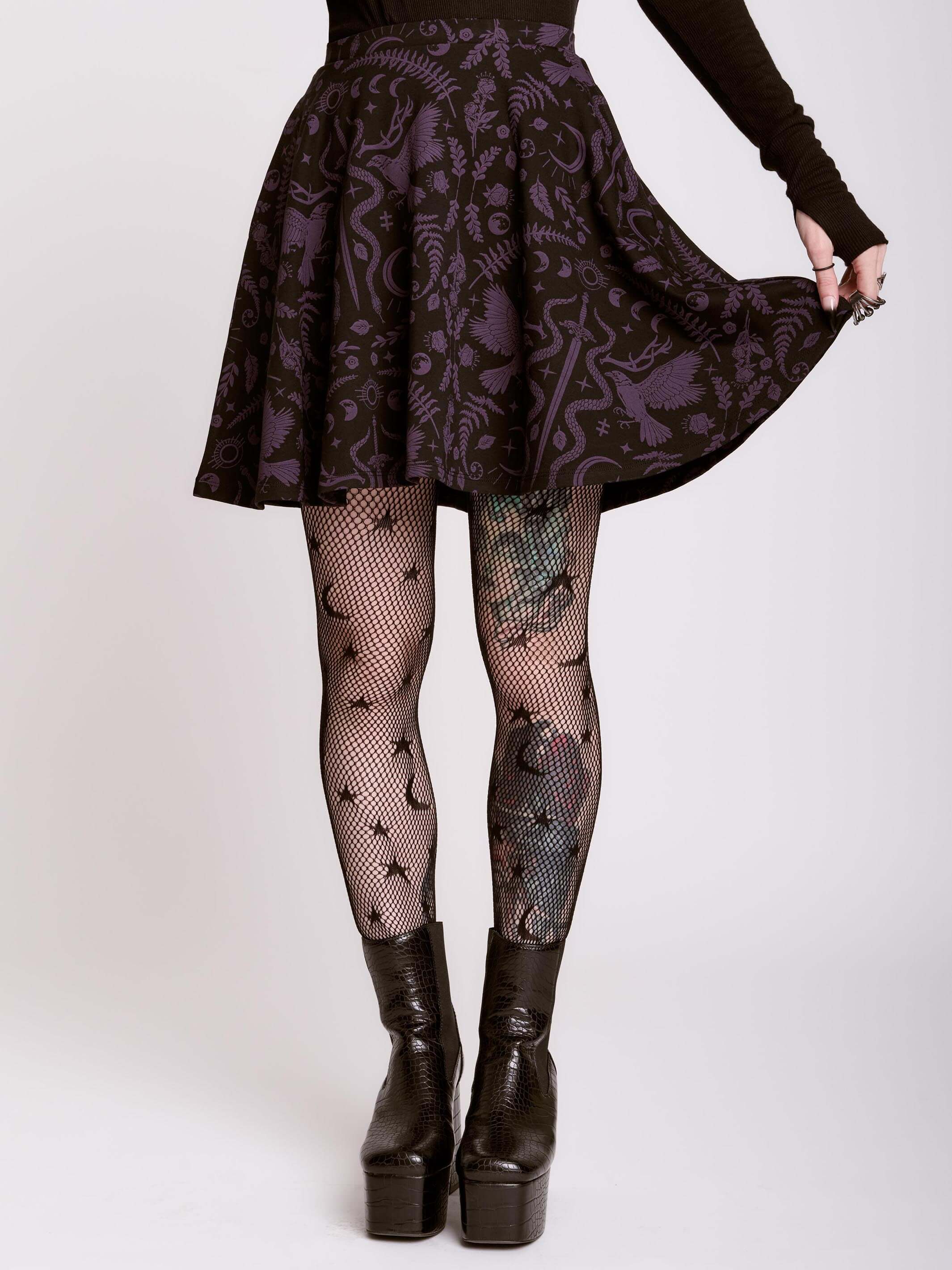 Introducing our newest Dark Ages print on a zip front skater dress made of double knit ponte'. This versatile dress will take you anywhere your dark heart desires.