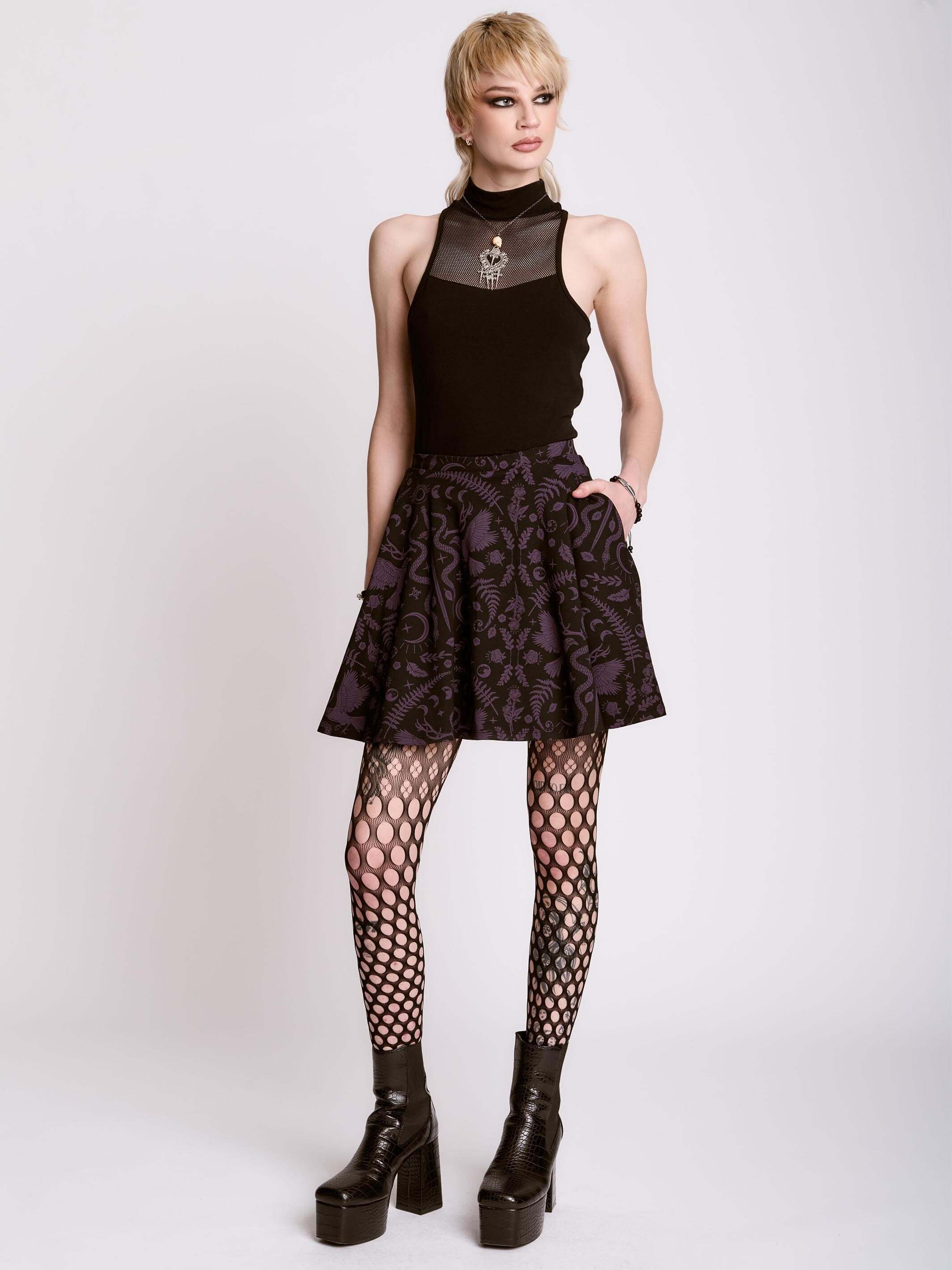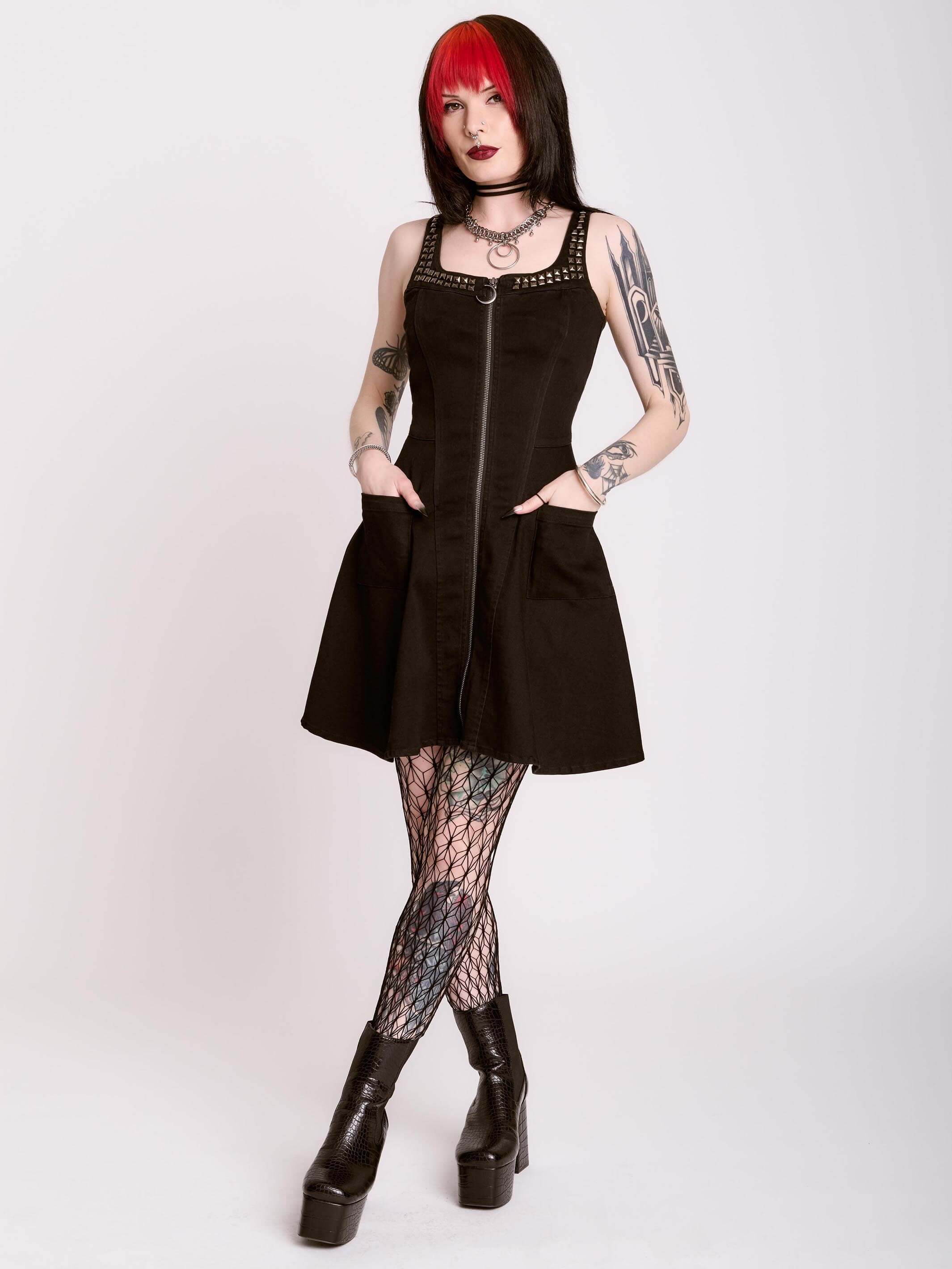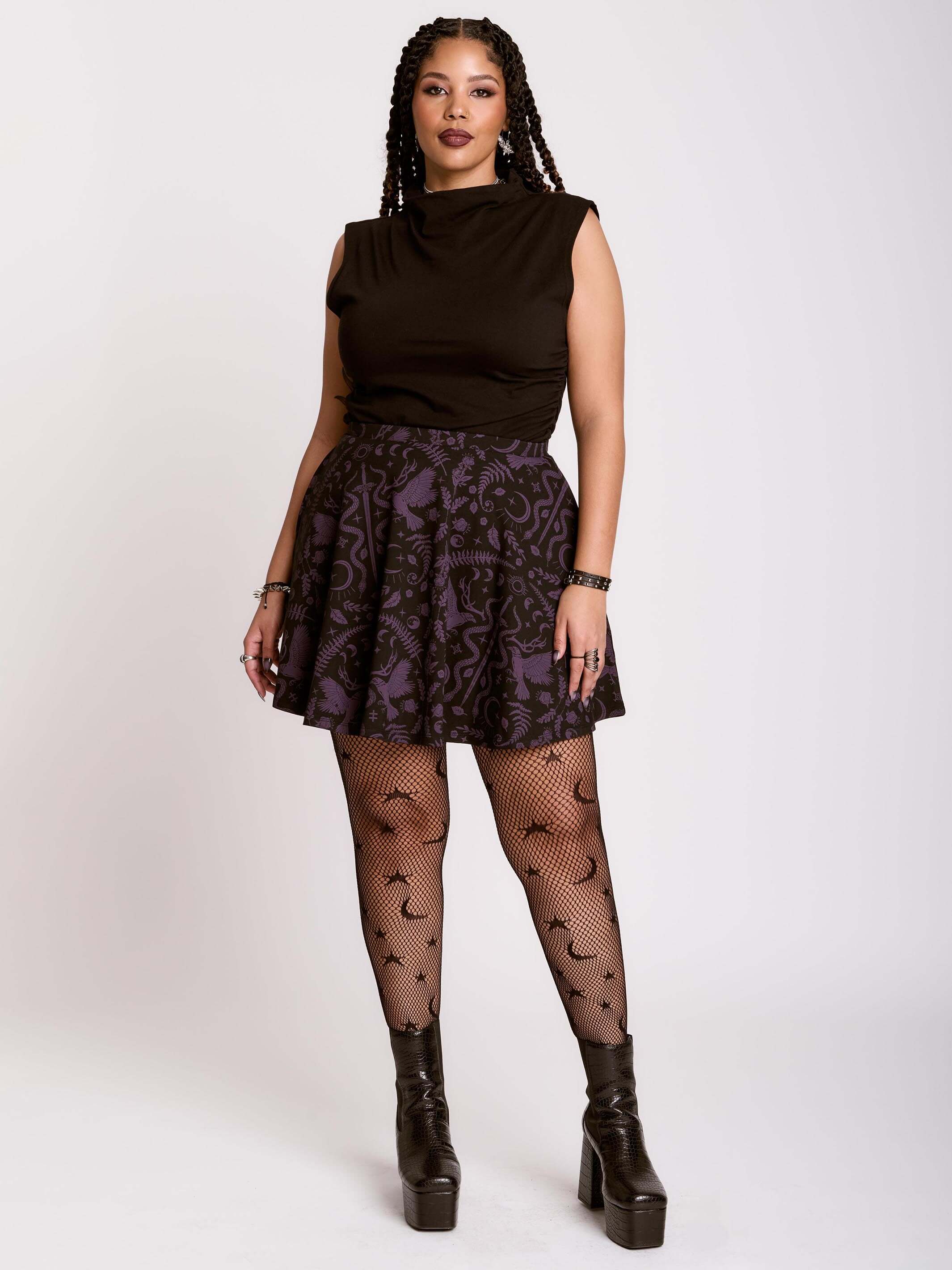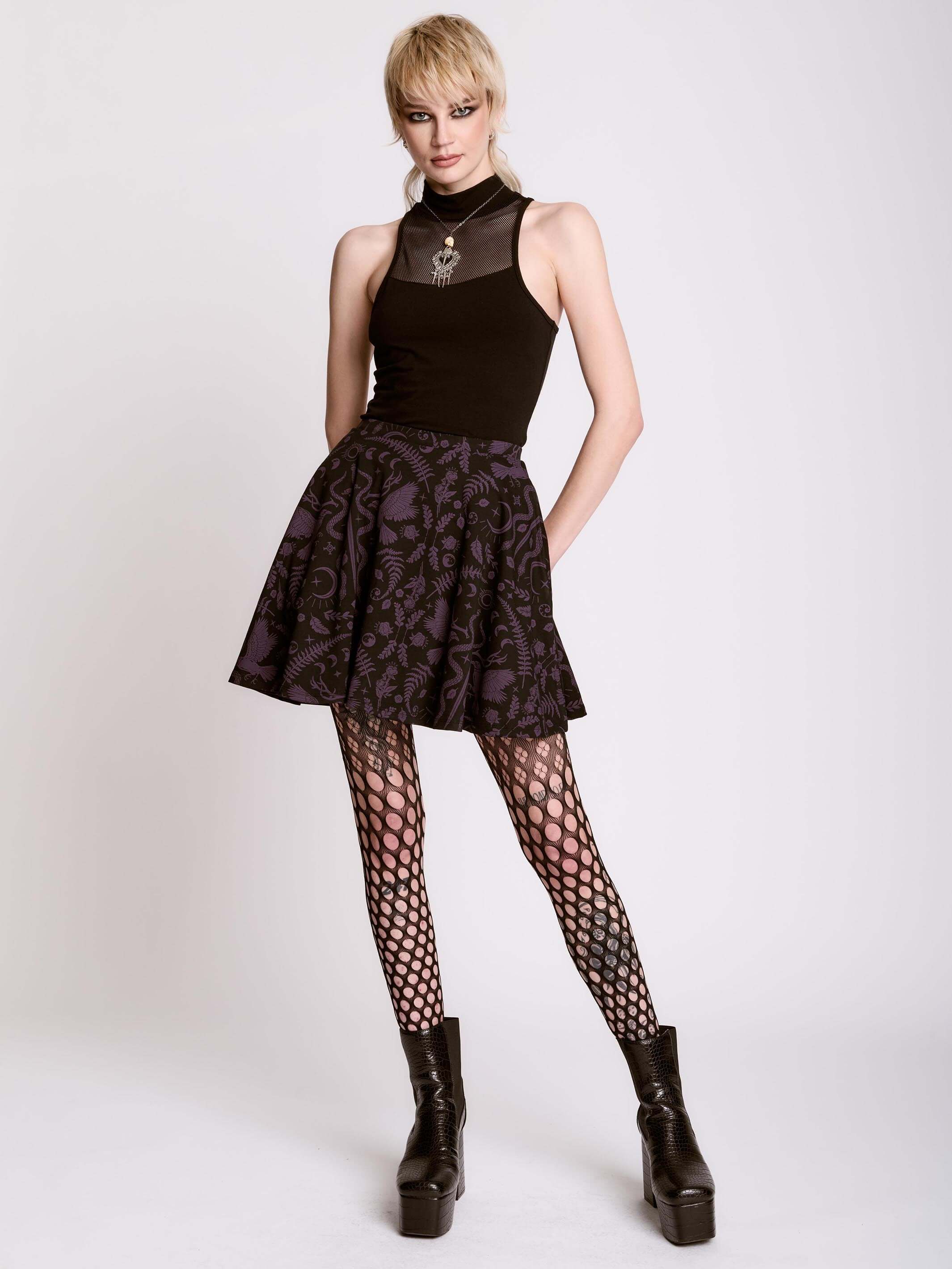 Introducing our newest Dark Ages print on a zip front skater dress made of double knit ponte'. This versatile dress will take you anywhere your dark heart desires.