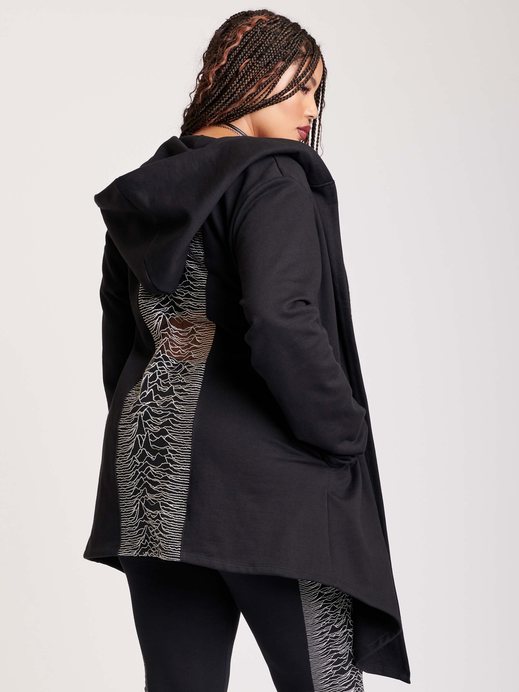 Model is 5'3" wearing a XS. The other model is 5'10" wearing a XL.