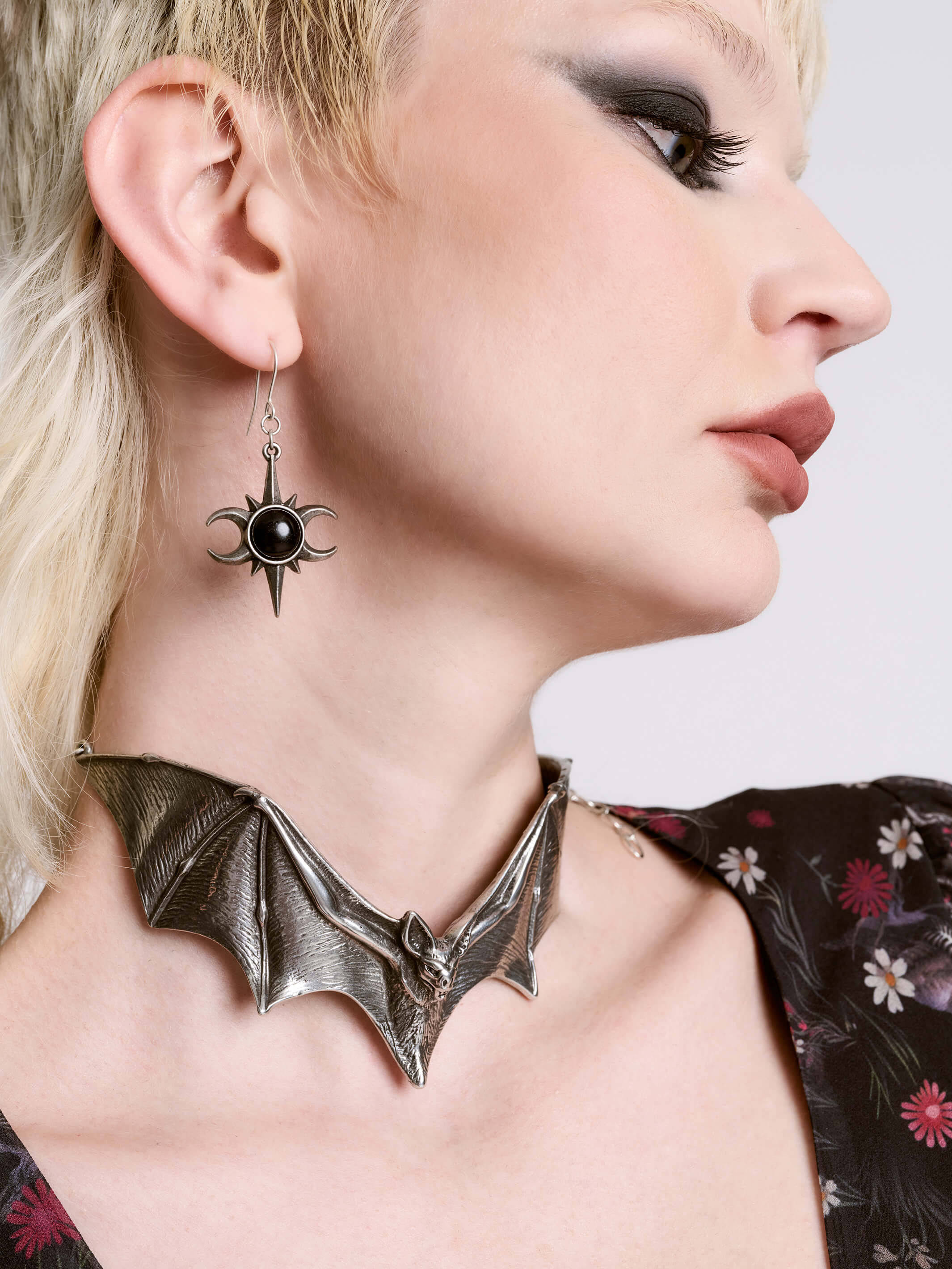 Handcrafted by our friends at Alchemy of England. Made from fine English pewter, this choker is not just an accessory; its a work of art that embodies the spirit of the nocturnal, the bat. The lifelike details and striking design capture the essence of these mysterious night creatures, making it a perfect choice for those who dare to stand out.