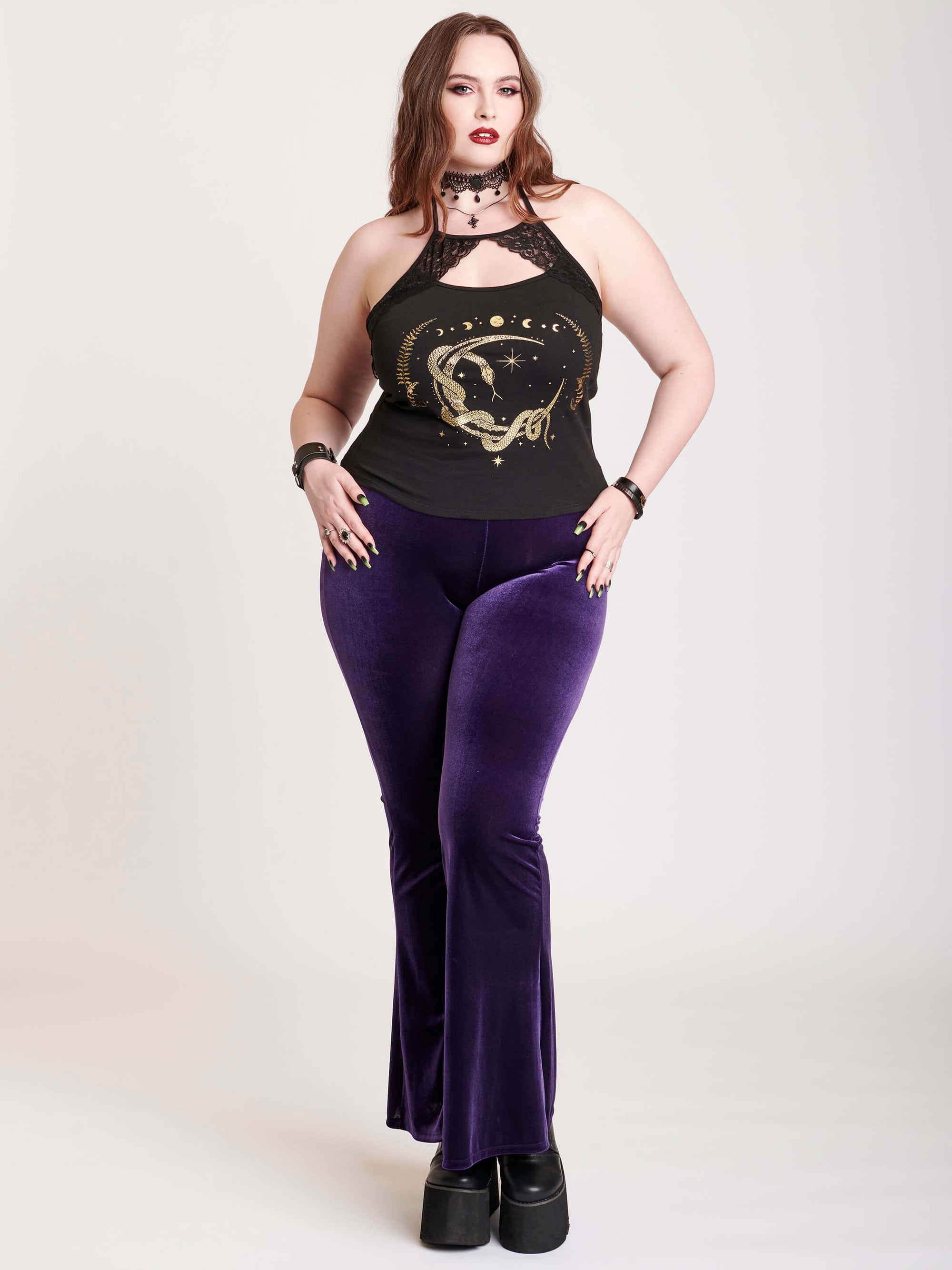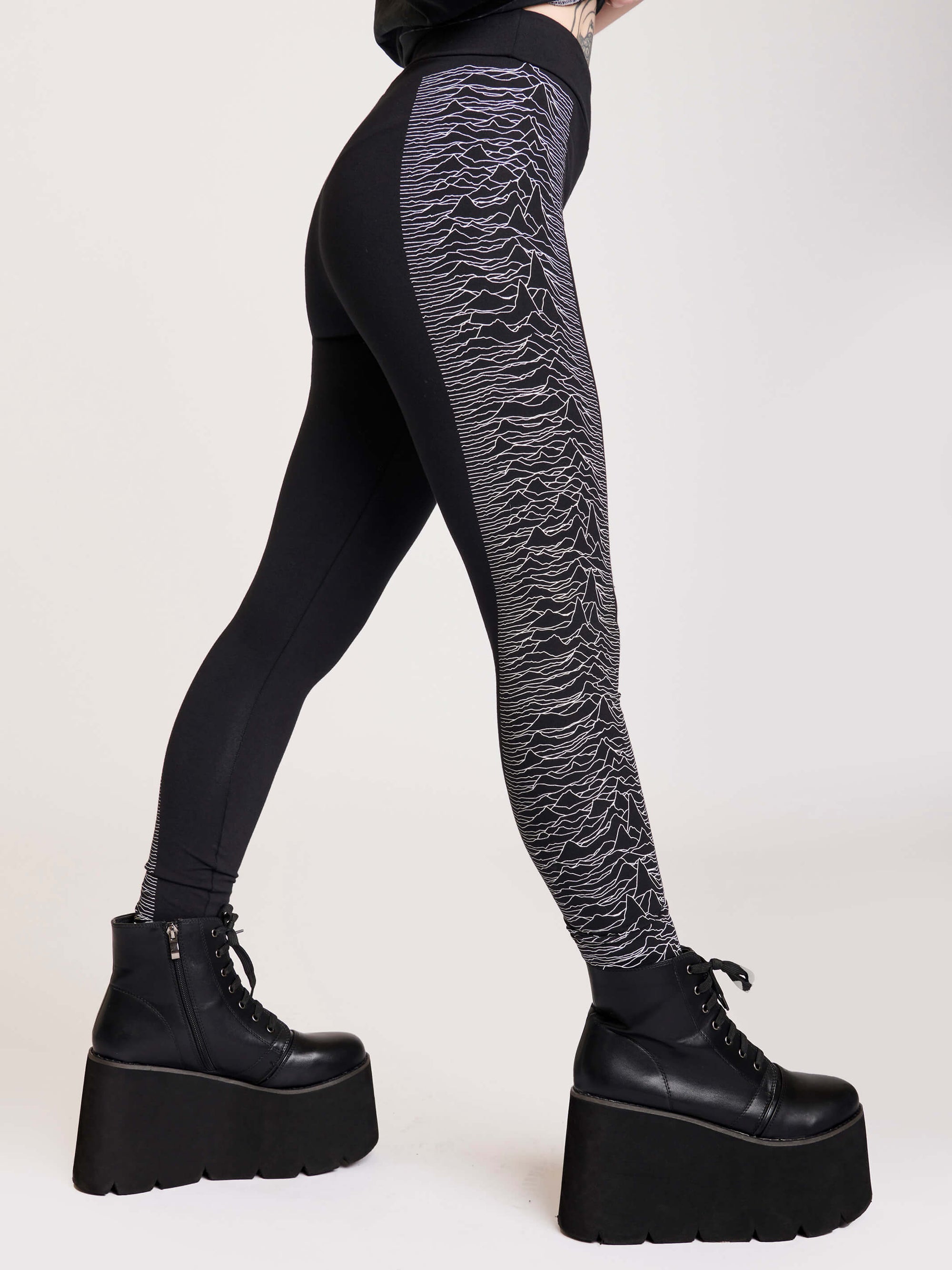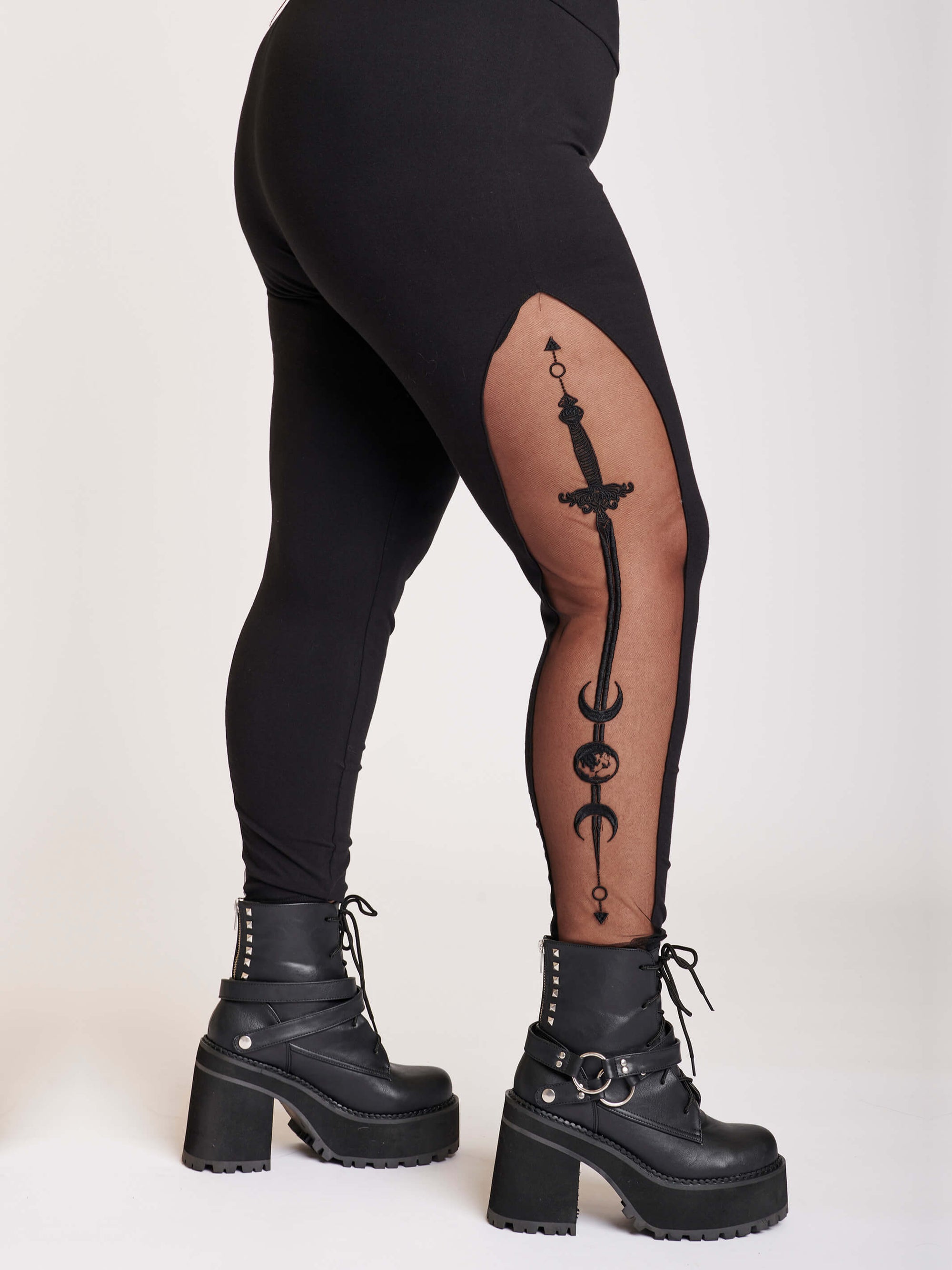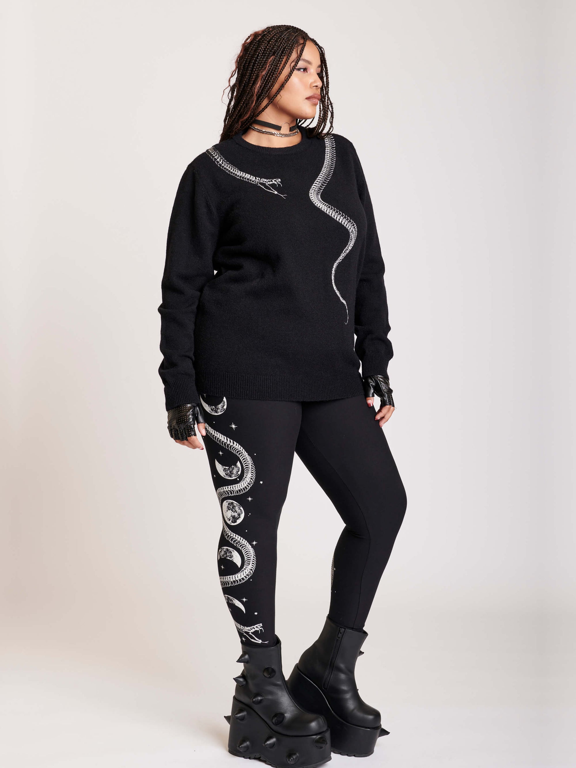 BLACK LEGGING WITH WHITE GRAPHIC FEATURING PRAYING SKELTON AND MOON PHASE