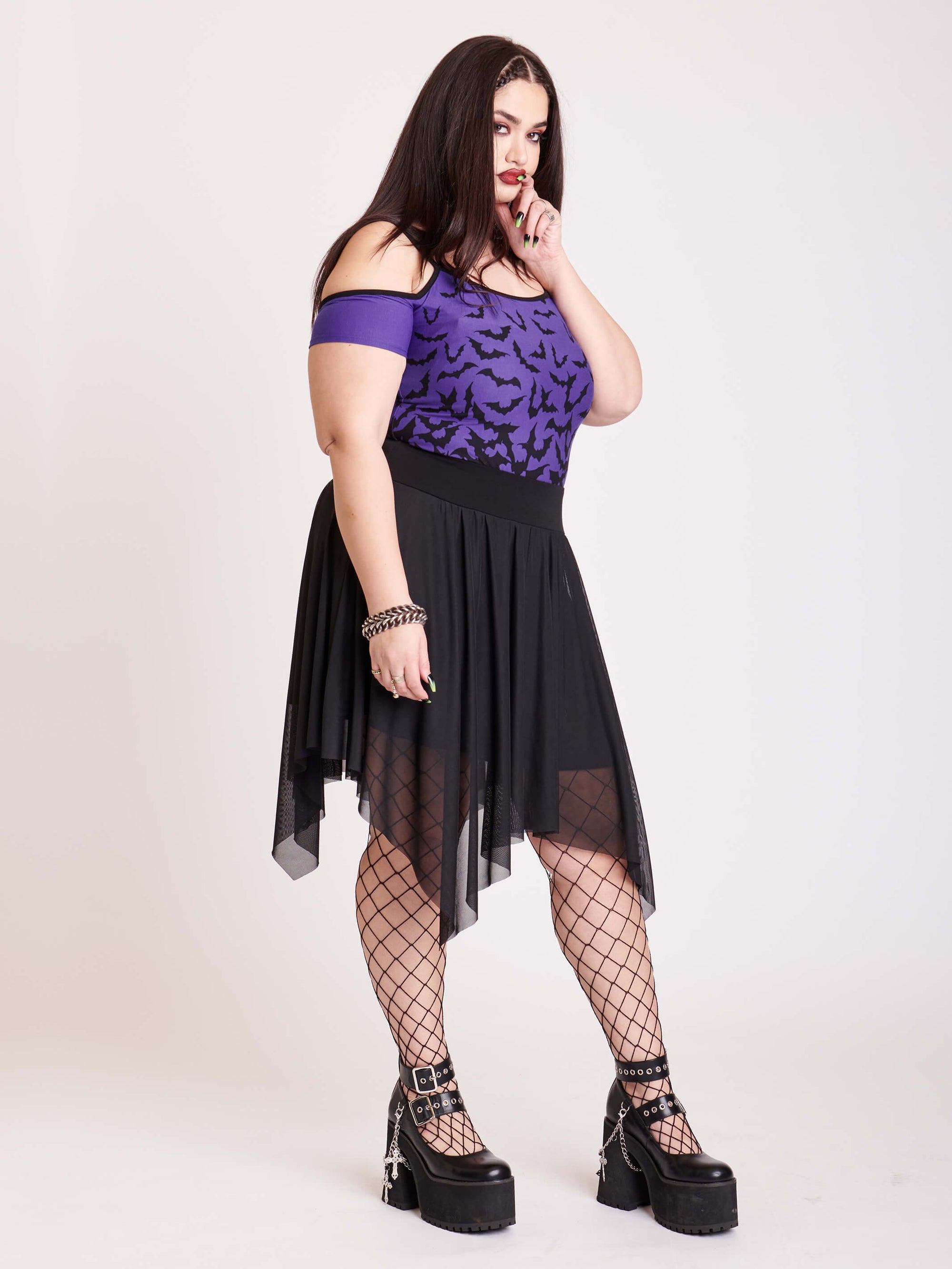 Shop the best plus size, dark aesthetic skirts from Midnight Hour. Our exclusive collection includes lace skirts, mesh skirts, velvet skirts, pleated skirts, midi, mini, and more. Extended sizes 3XL - 5XL. Make sure to check out our size chart to get the perfect fit.
