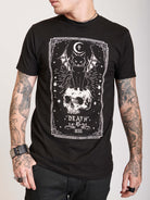 Discover endings and beginnings, birth and rebirth, change and transformation with our Death tarot art. 100% combed cotton unisex fit t-shirt.