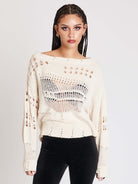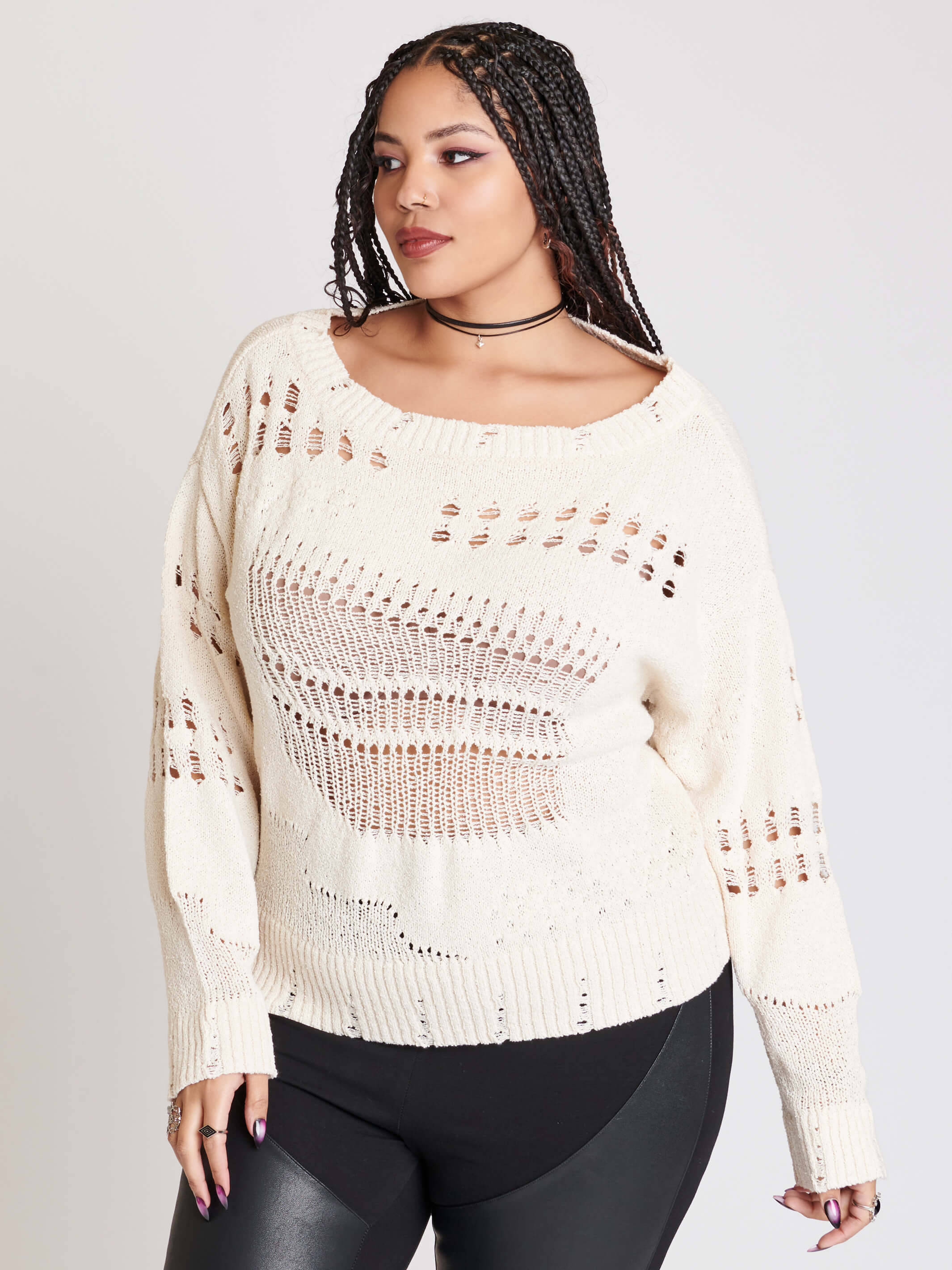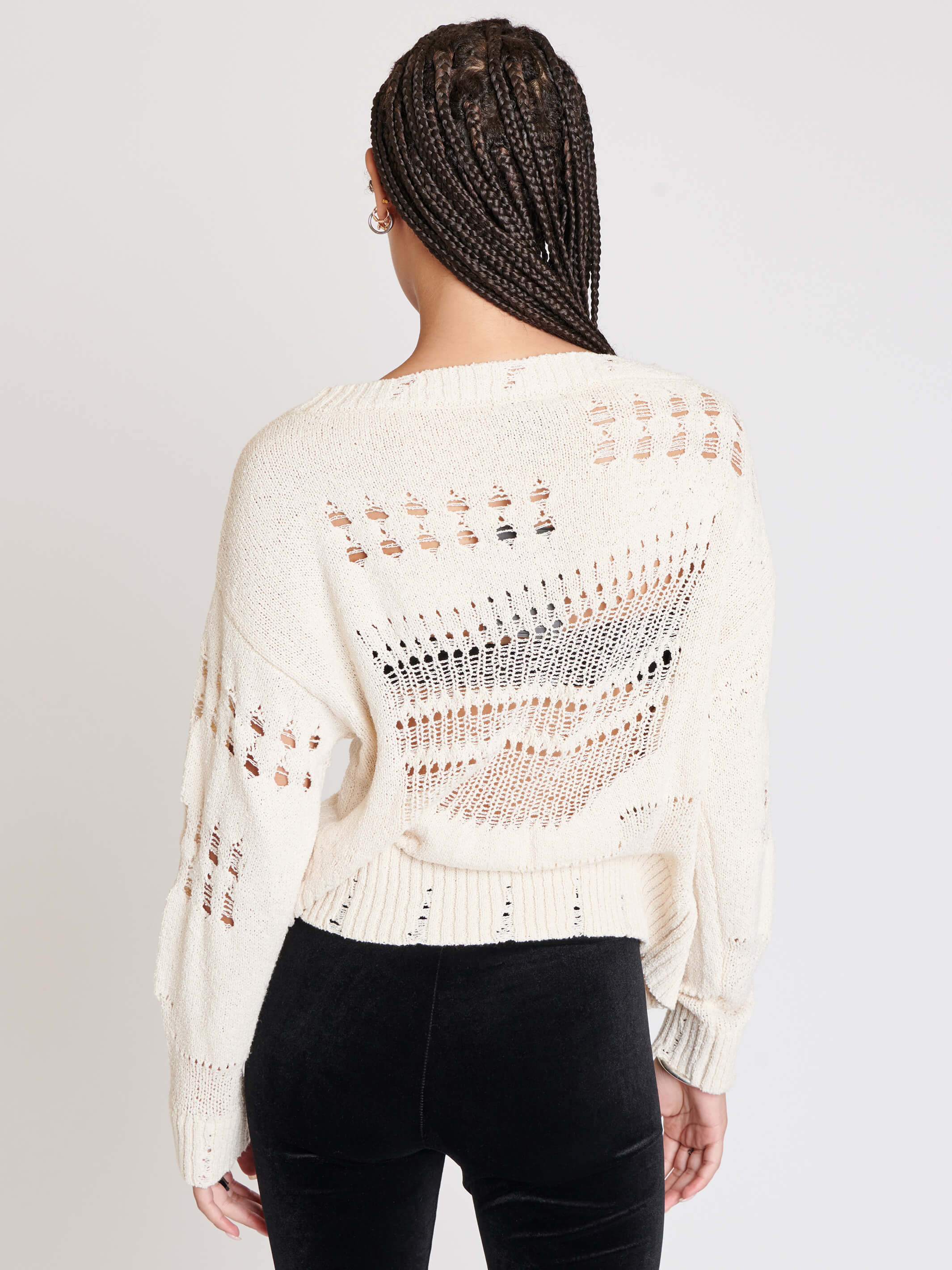 Feeling destructive? This sweater has a knit construction with all over distress details and a slouchy fit.