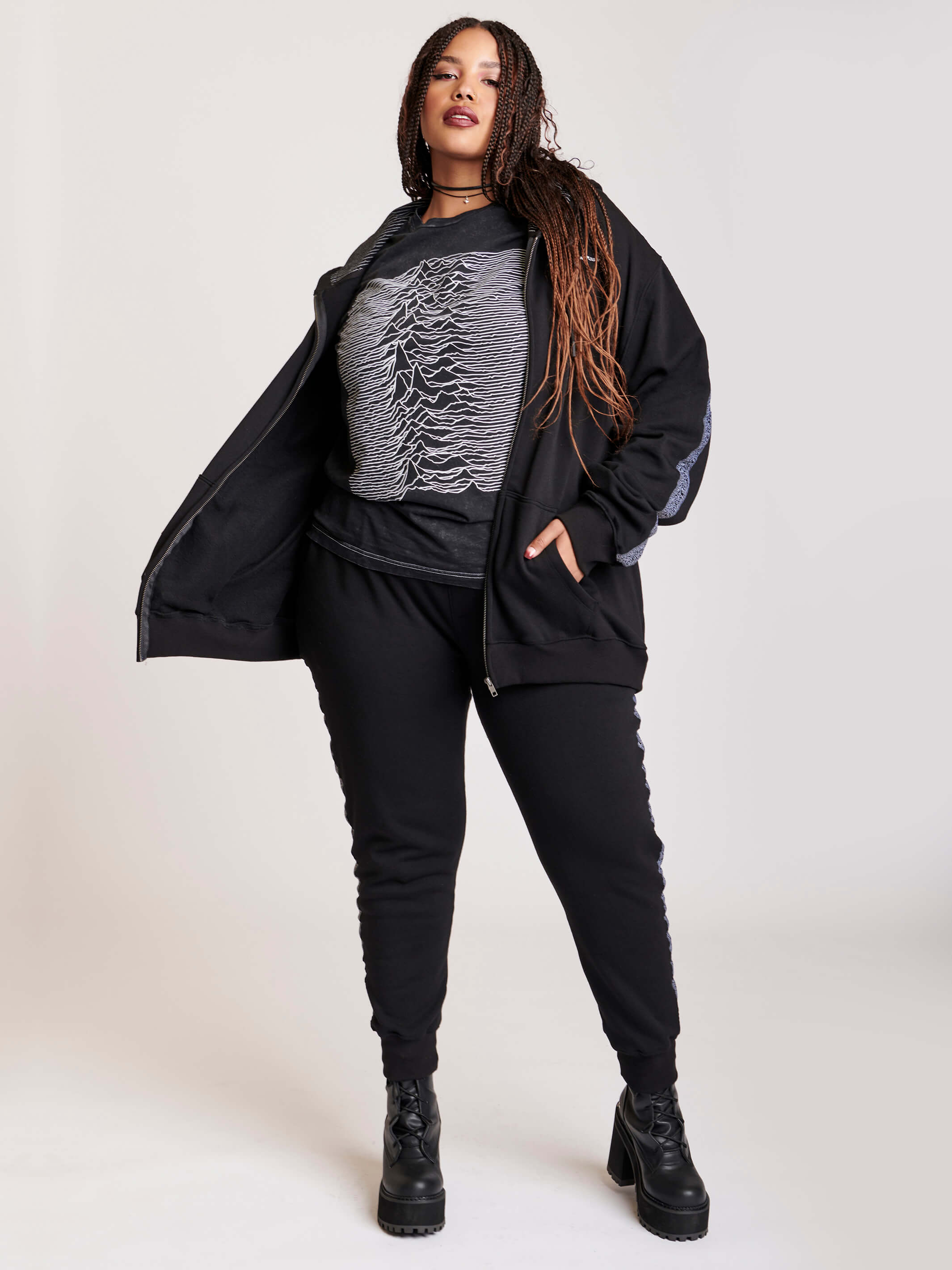 Cozy up in our fleece zip up and pullover hoodies. Unisex, cropped, or cloaks - we got it all.
