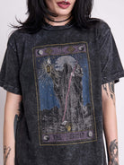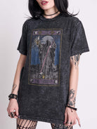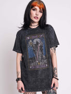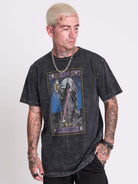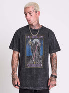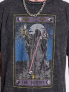 100% cotton unisex fit t-shirt featuring our custom Hermit Tarot artwork and distressed mineral wash treatment. This is a men's fit, if you want it more fitted size down. Please note these are individually hand dyed and each shirt will vary in appearance.