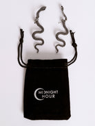 Unleash your inner viper with these stunning dangling serpent post earrings, meticulously designed to make a statement wherever you go. Crafted from stainless steel the serpent exude a sense of confidence and strength, reflecting your slithering spirit.